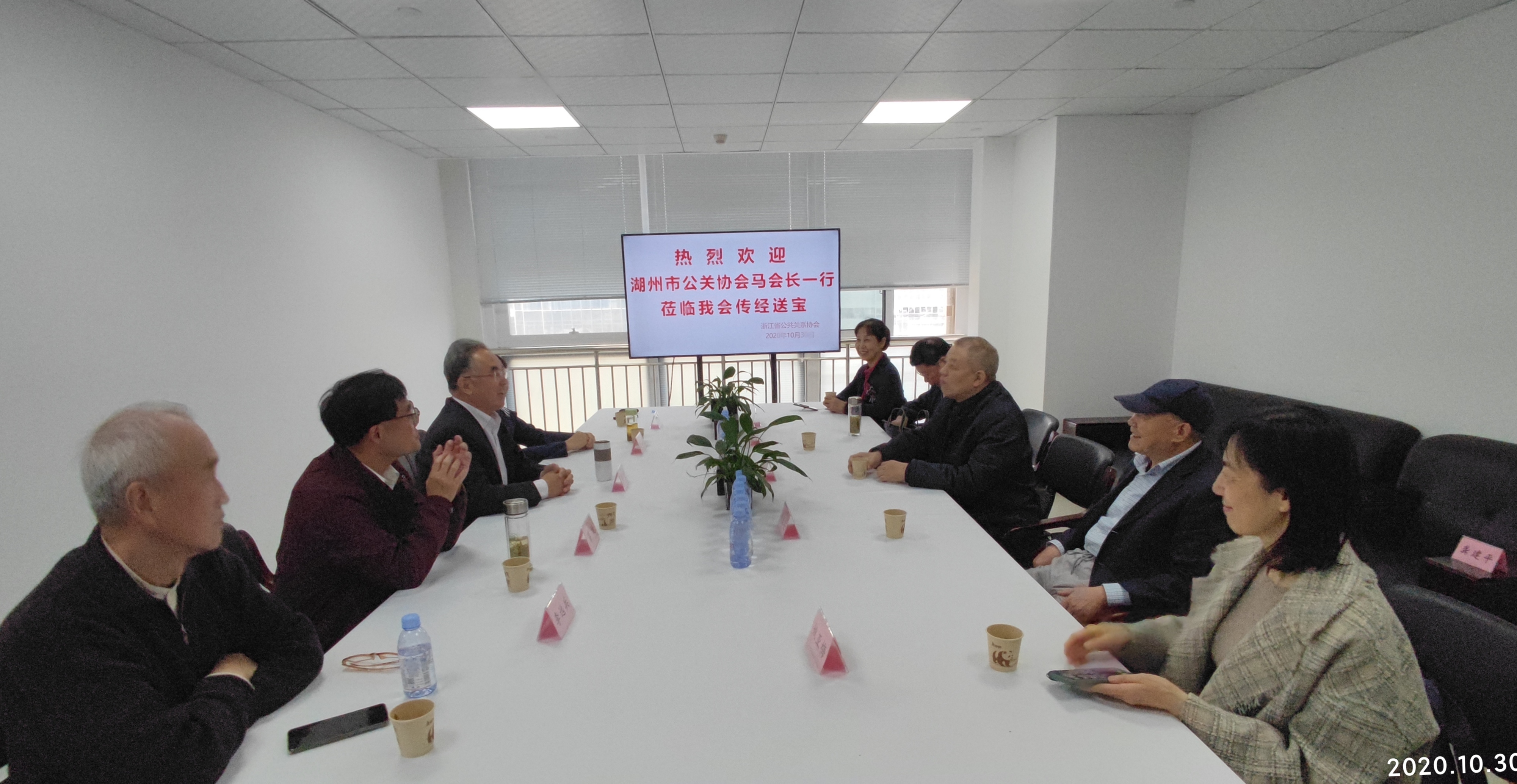 2020年10月30日,湖州市公共关系协会马红宝会长、黄春安执行会长等一行6人,专程来到杭州省公共关系协会走访,与袁超执行会长等一起,相互坦诚交流情况,共话公关事业发展前景。