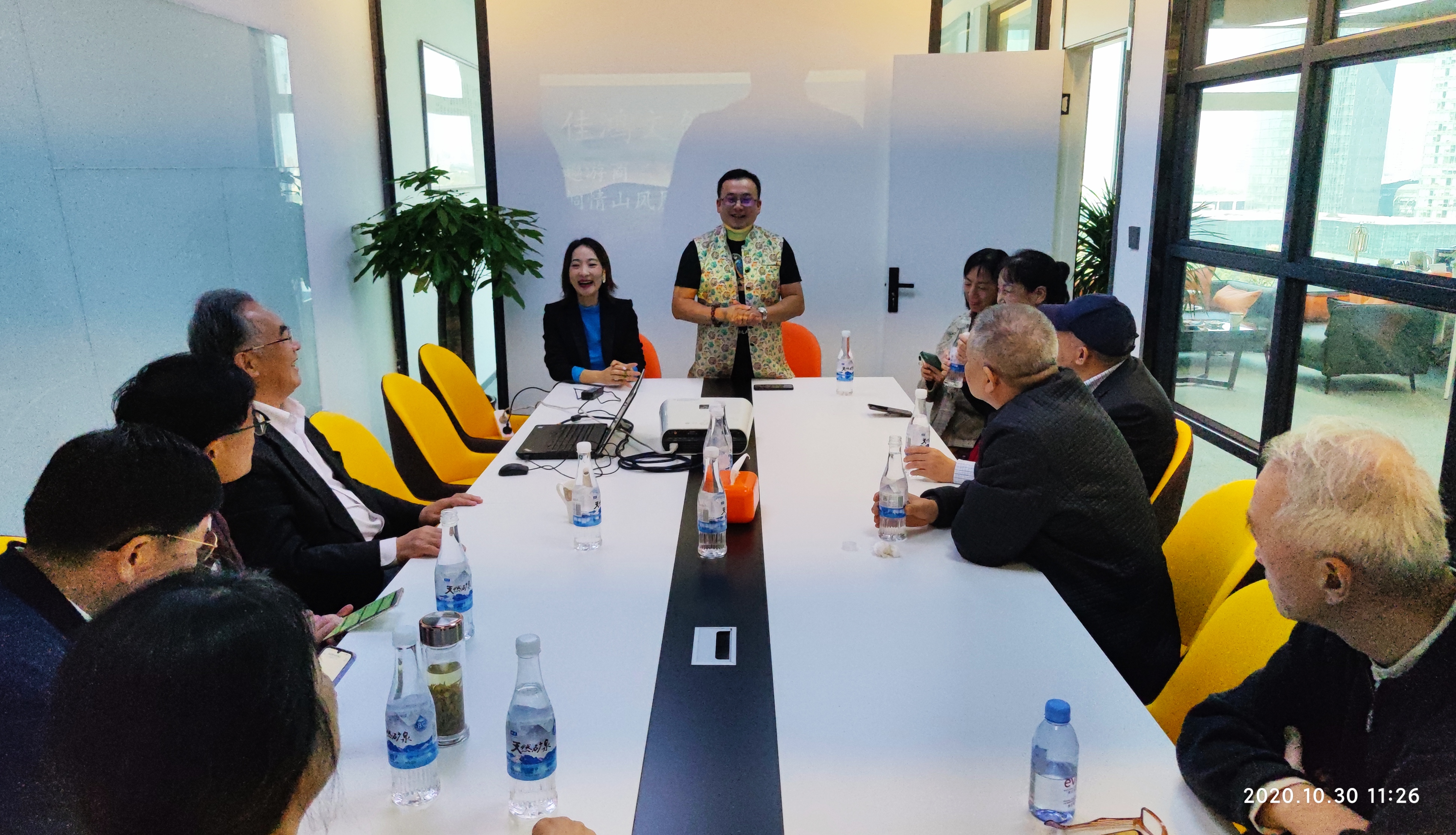 随后,省公关协会袁超执行会长等陪同马红宝会长、黄春安执行会长一行,来到高楼林立的杭州钱江新城区域,参访杭州佳鸿文创科技有限公司,受到了该公司总经理洪鹏和副总经理高燕华的热情接待,听取了该公司慨况、业务特色和良好业绩情况的介绍,使两家公关协会的同志很受启发。