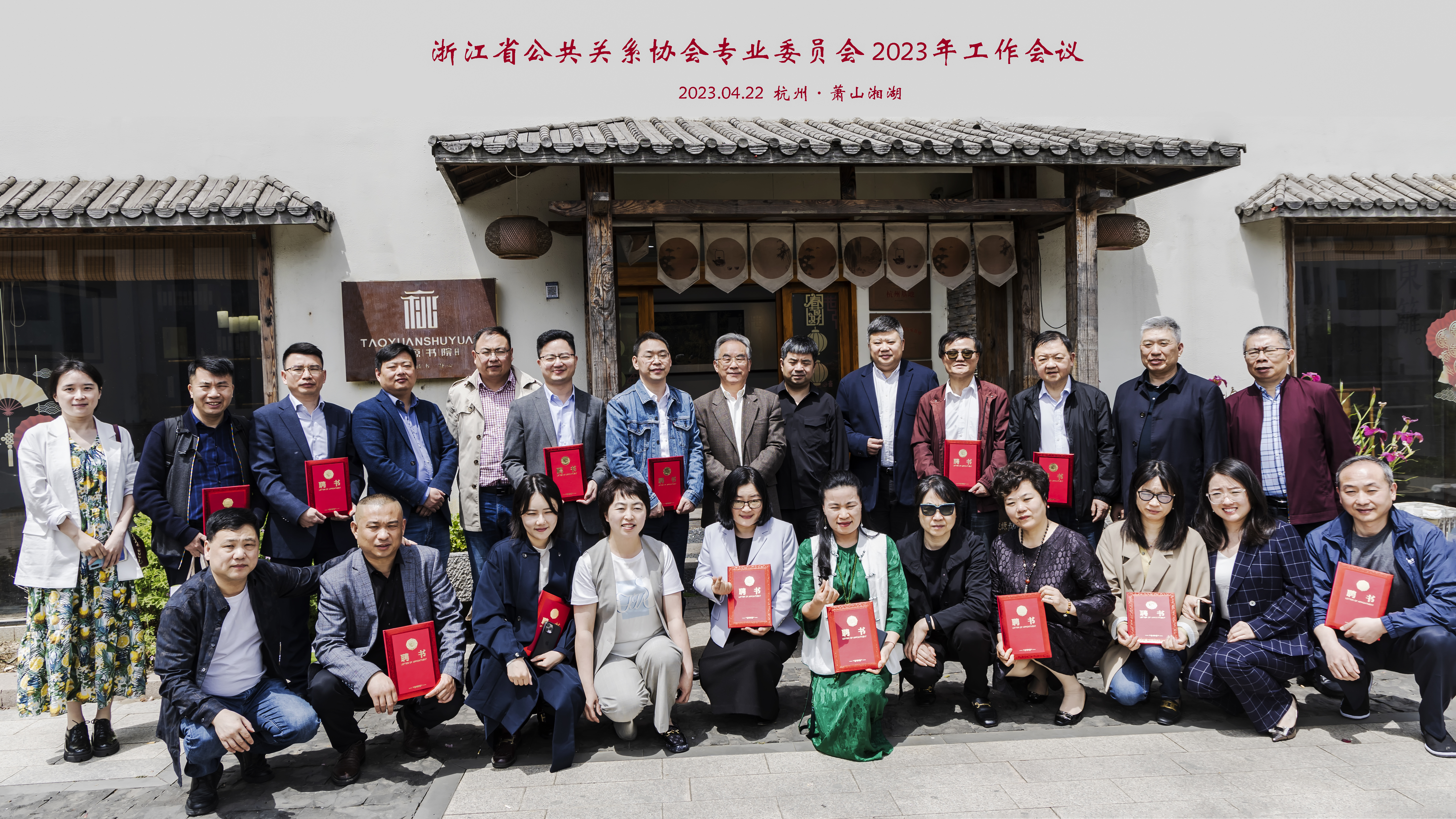 览亭远眺碧湘湖,绿水青山似玉姝。2023年4月22日,浙江省公共关系协会在美丽的杭州湘湖桃塬书院组织召开了协会专业委员会2023年工作会议。专委会主任、副主任和协会相关领导等30多人参加了会议。