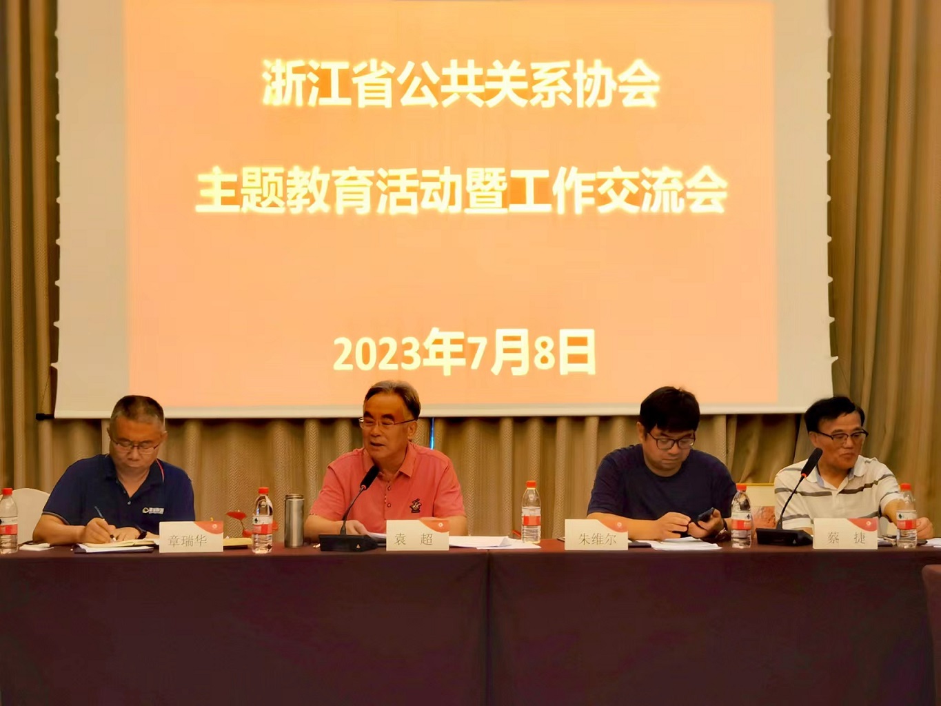 2023年7月8日,浙江省公共关系协会在杭州举行主题教育专题辅导暨工作交流会。会议紧紧围绕着“党建引领强会建 谋划良策促发展”主题主线,安排了主题教育专题辅导、认真总结协会届一年来主要工作情况和战略合作协议签约仪式等议题。省公关协会第七届理事会领导班子成员、功能型党支部成员、协会各专业委员会主任参加会议,特邀部分代表列席会议。