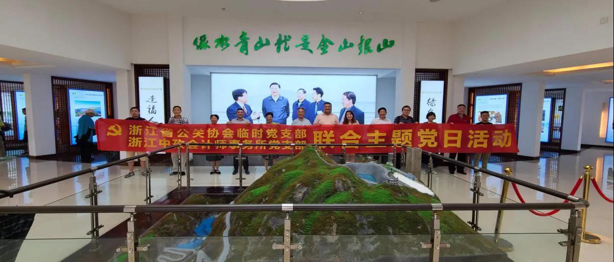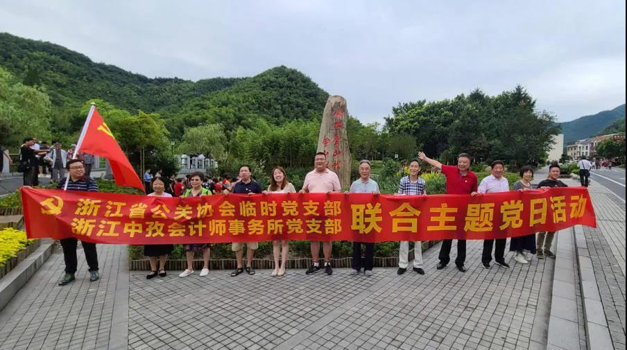 为认真学习贯彻习近平总书记考察浙江时重要讲话精神及省委十四届七次全会精神,同时也是以实际行动贯彻落实省社科联第八次代表大会精神,7月25日,浙江省公共关系协会临时党支部与“会企携手共建”单位—浙江中孜会计师事务所有限公司党支部,组织14名党员,走进“两山理论”诞生地—安吉余村开展联合主题党日活动,实地感受“绿水青山”发展之路。