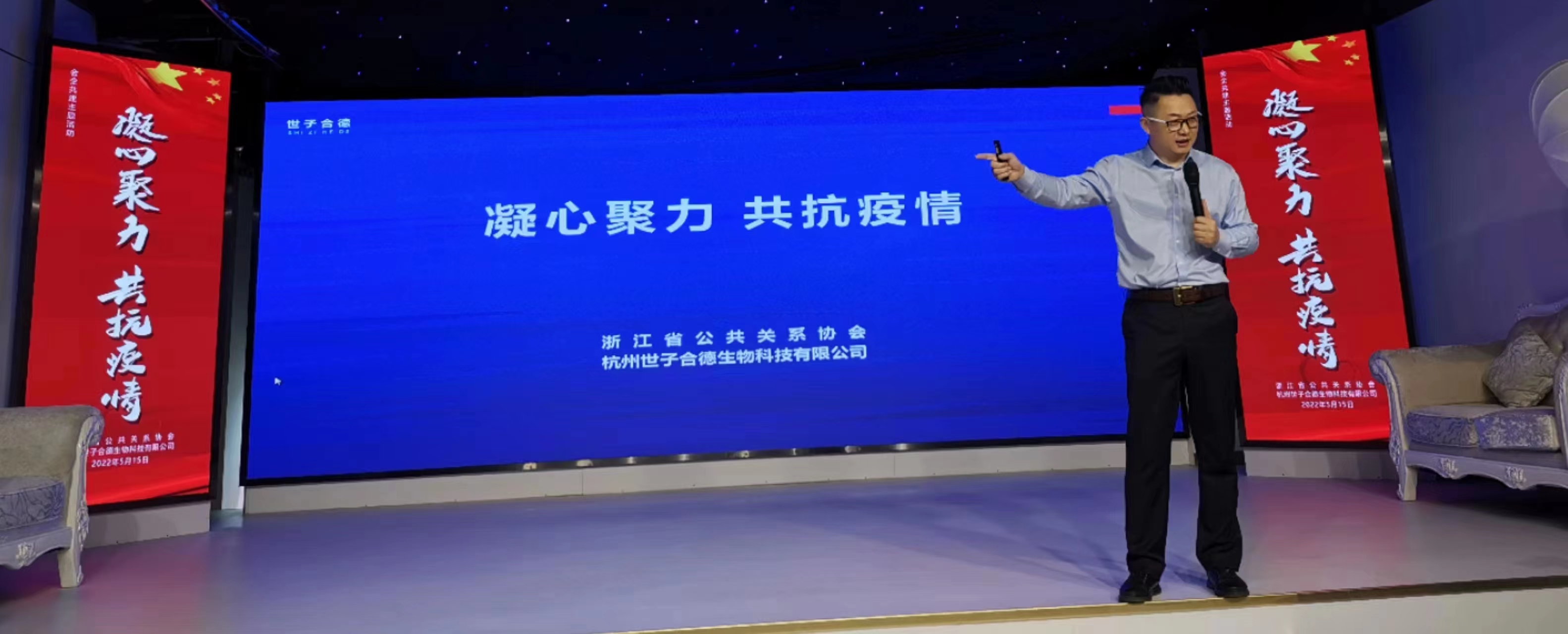近日,省公共关系协会深入学习贯彻中央和省委政府关于疫情防控工作的重要精神,按照省社科联相关要求部署,组织开展 “疫情防控做实做细主题活动”。5月15日,协会联合杭州世子合德生物科技有限公司,以“会企共建”形式,组织了 “凝心聚力 共抗疫情”主题活动。